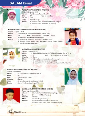Prestasi : 1. Juara I Lomba Hafalan Surat Pendek (TK)