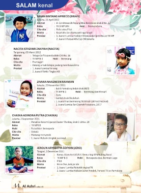 Prestasi : 1. Juara I Fun Swimming TK Al Fath (Al Fest Festival)